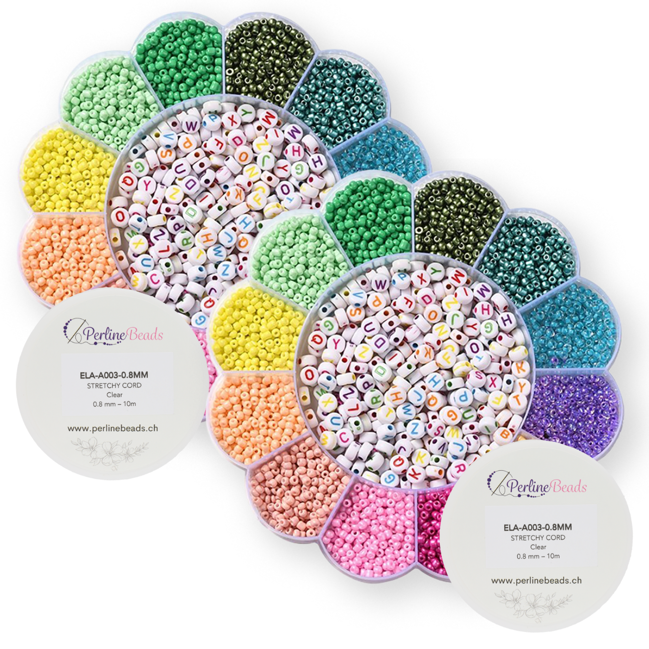 • 2x Boxen unregelmässige Glas-Rocailles inkl. Buchstabenperlen (über 6.000 Perlen!)