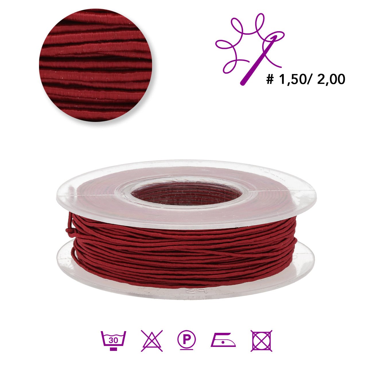 • Samantha ist ein glänzendes Viskose-Rundgarn mit einem Durchmesser von 1 mm.