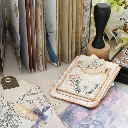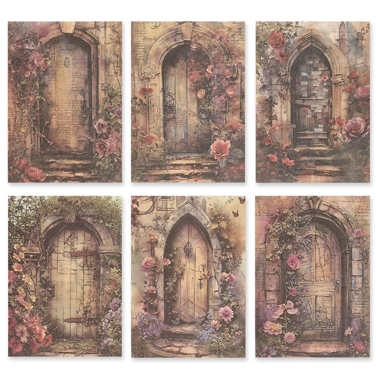 Misteriose porte ricoperte di rose e edera ti invitano in un mondo romantico pieno di storie e luoghi nascosti. Questo set di carta decorativa in stile vintage nostalgico è perfetto per junk journal, mixed media, collage o creazioni artistiche con la carta. Ogni motivo sembra una porta verso un altro mondo, perfetto per dare un tocco fiabesco alla tua creatività.