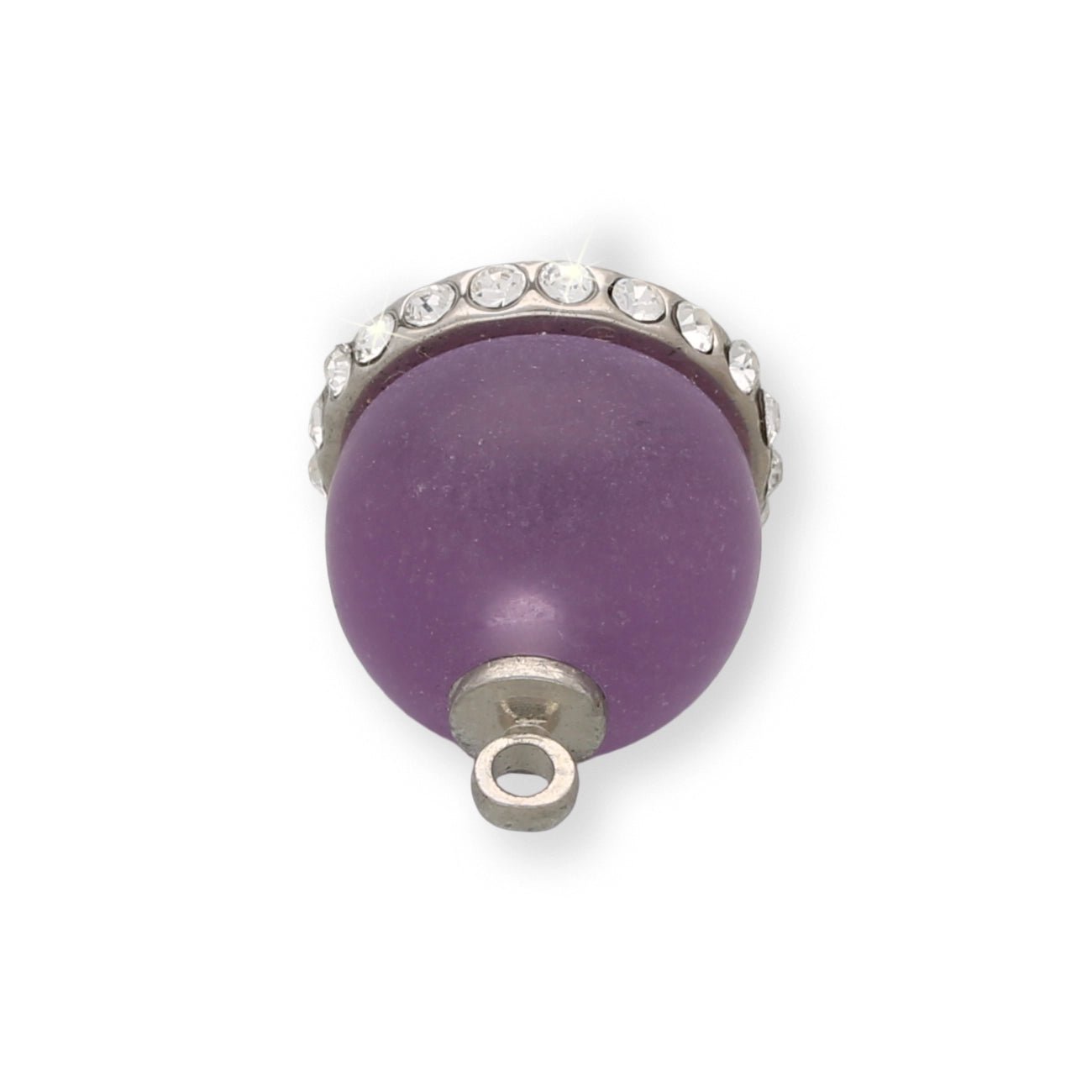 Ciondolo giocoso “Campanella”: cupola semisferica in delicato viola, con strass scintillanti su tutto il bordo. Leggero, brillante e perfetto per attirare l'attenzione su bracciali, collane o ciondoli per borse.