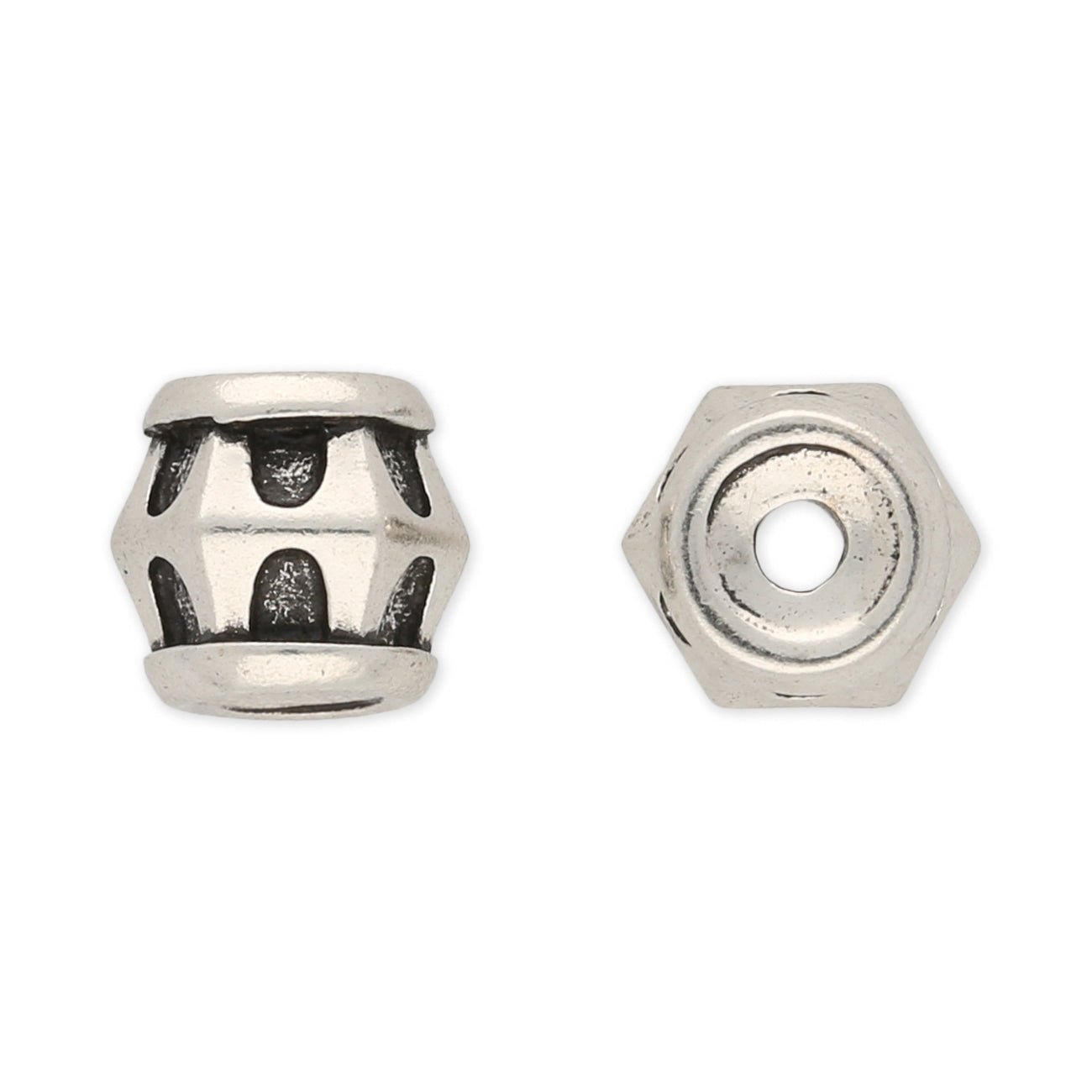 Questa perlina in metallo argento antico a forma di cilindro è il dettaglio perfetto per gioielli maschili come bracciali e collane.