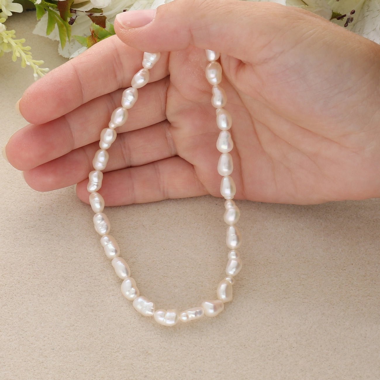 Perlina coltivate – Forma a chicco di riso ca. 5–8 × 5 mm