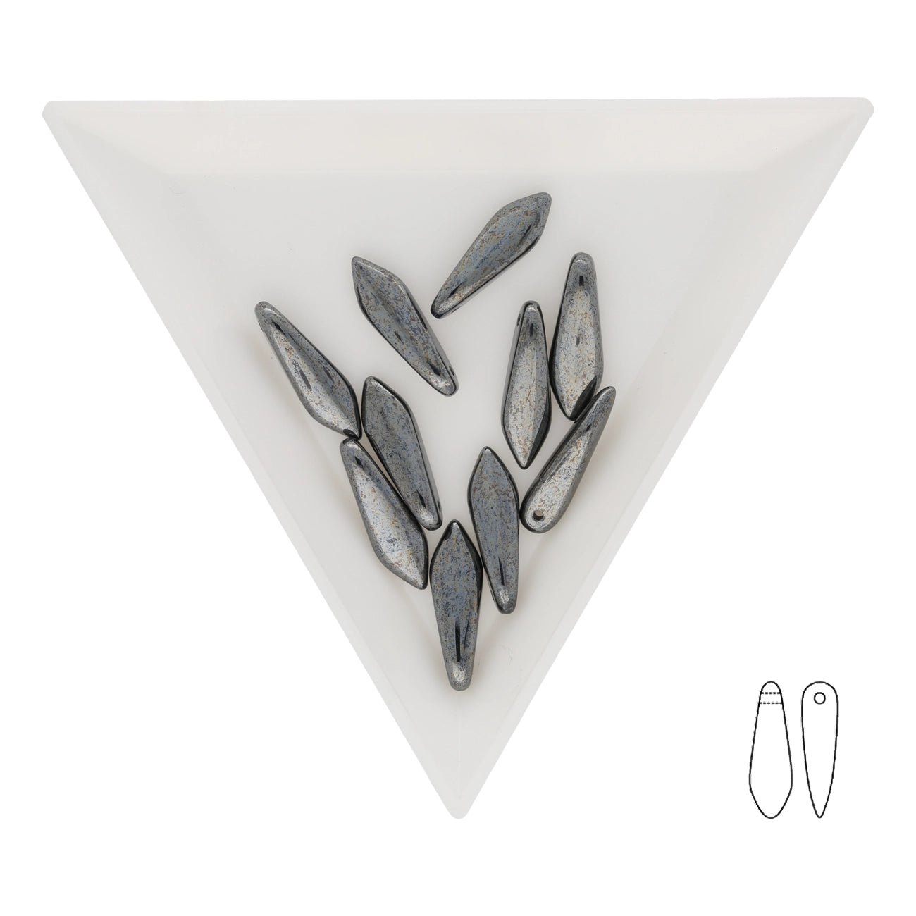 Le perline Dagger a foro singolo di CzechMates sono perline piatte a forma di lama che si assottigliano su un lato per formare una punta morbida.