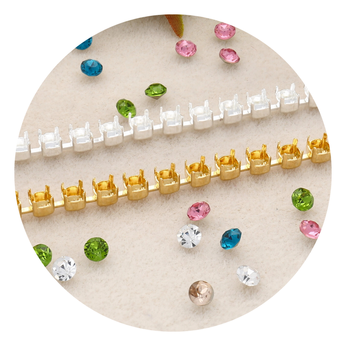 Personalizza il tuo bracciale Cup-Chain con cristalli chaton di alta qualità, brillanti come quelli realizzati da un gioielliere professionista! Scegli i tuoi colori preferiti e dai un tocco personale al tuo gioiello.