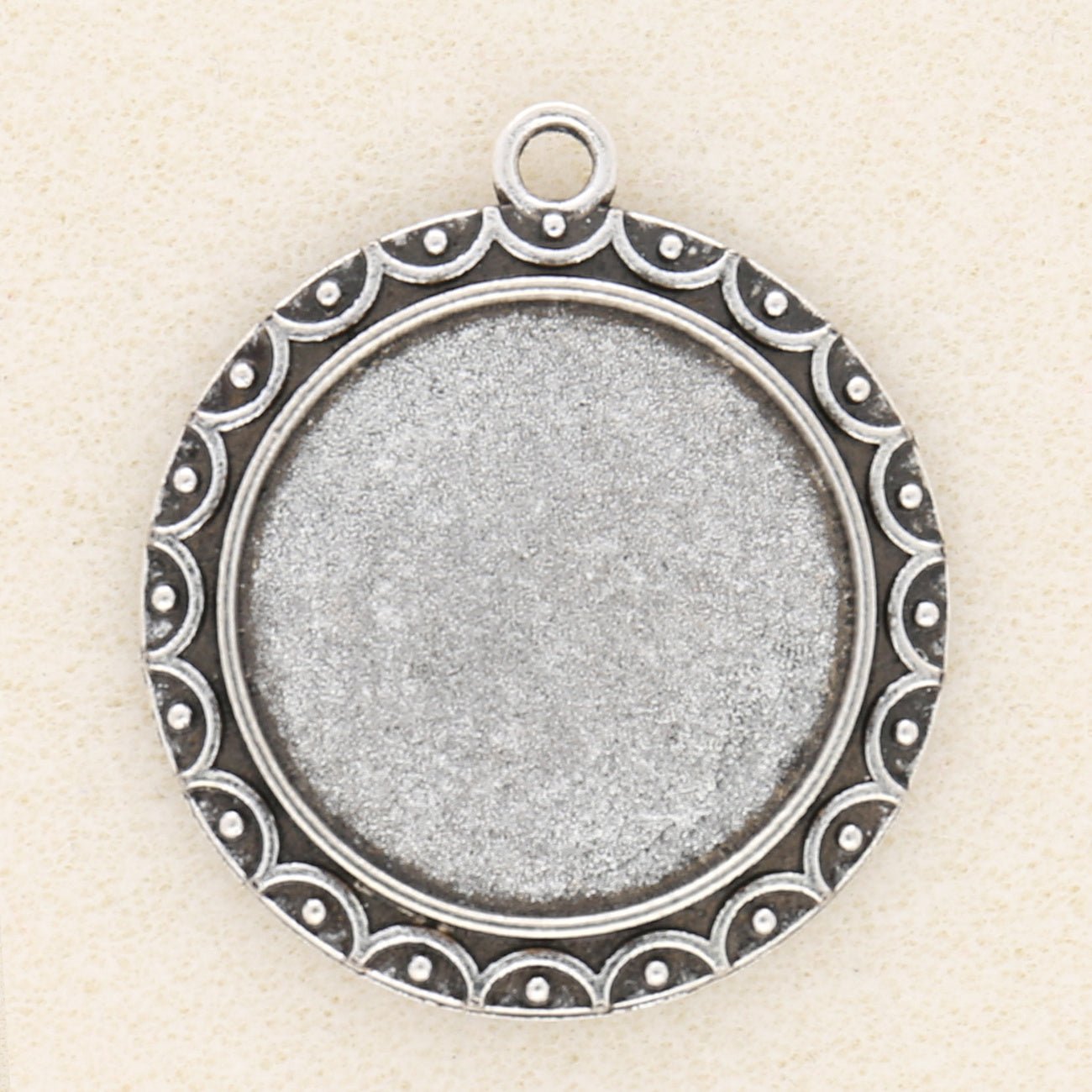 Pendenti in lega tonda piatta in stile tibetano, colore argento antico.