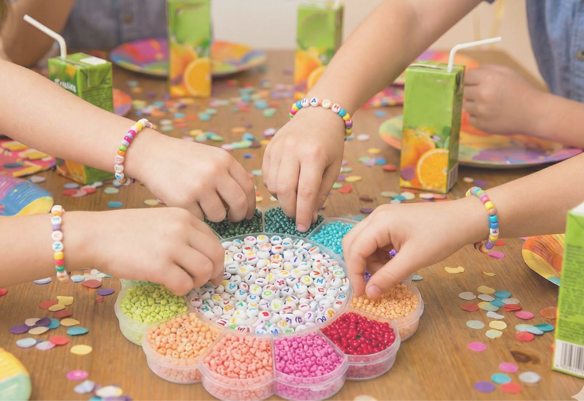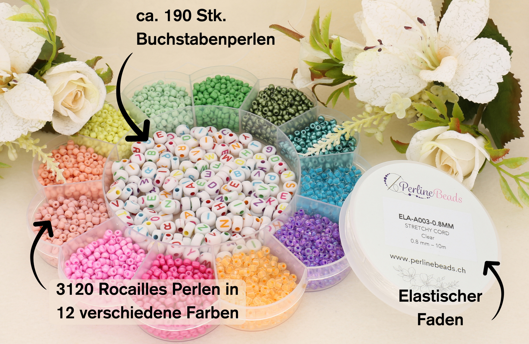 Die Buchstabenperlen machen das Fädeln besonders spannend, wenn geheime Botschaften oder Freundschaftsbekundungen entstehen.
