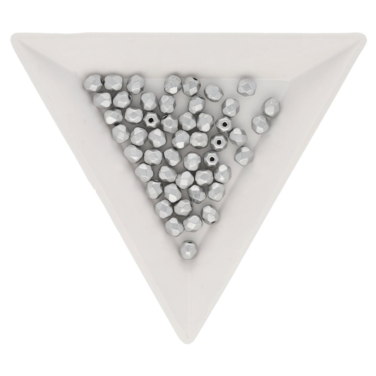 Fire polished 4 mm Glasperlen - Matte Metallic Silver