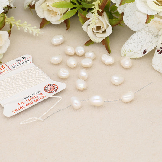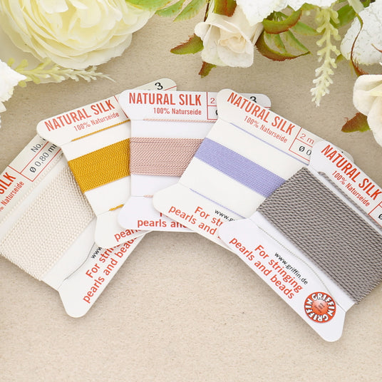 - Verkaufseinheit: 2 Meter Perlseide mit Edelstahlnadel
