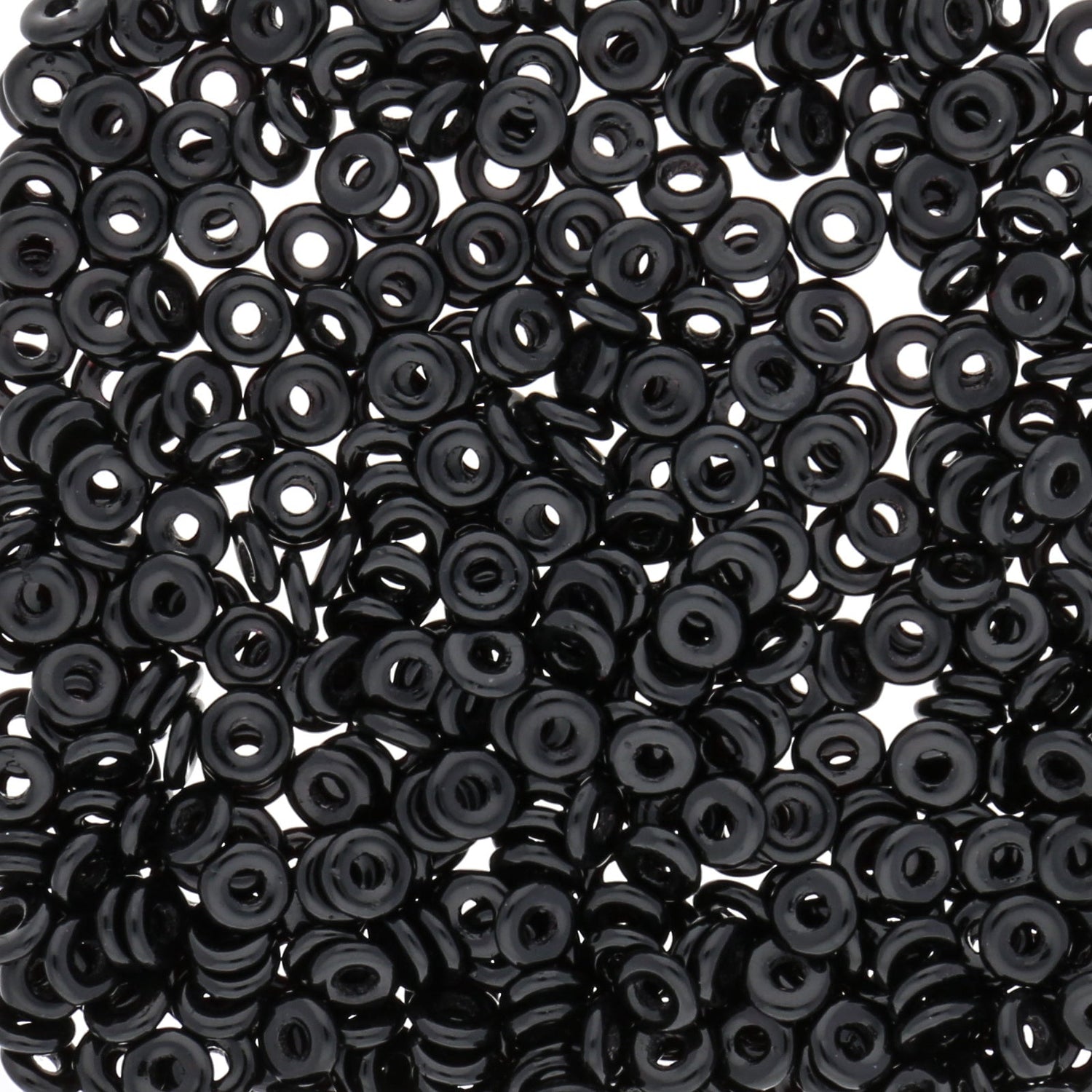 O-Beads Glas-Perlen, Farbe Jet, werden in der Tschechischen Republik hergestellt und haben die Form eines Donuts. Sie können in Webarbeiten eingesetzt und mit allen anderen Perlen kombiniert werden. Oder du kannst die O-Beads auch als Spacer Beads verwenden.